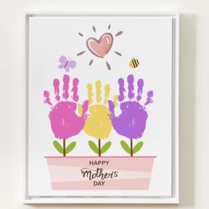 Mother’s Day 3 Flower Handprints Keepsake, Card, Gift