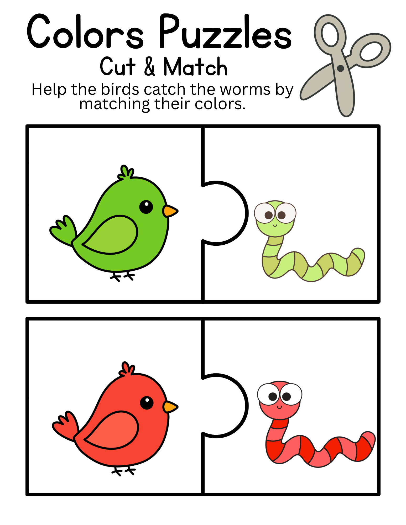 / Colors Puzzles Matching Birds to Worms Activity