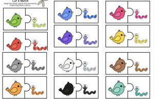 Colors Puzzles Matching Birds to Worms Activity