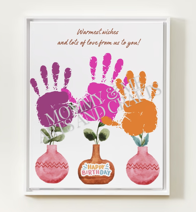 / Happy Birthday Printable Gift Card Flower Handprints