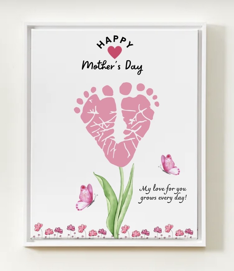 / Mother’s Day Baby Flower Footprints Keepsake, Card, Gift