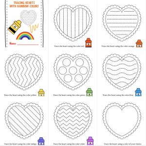 Tracing Hearts With Rainbow Colors Activity
